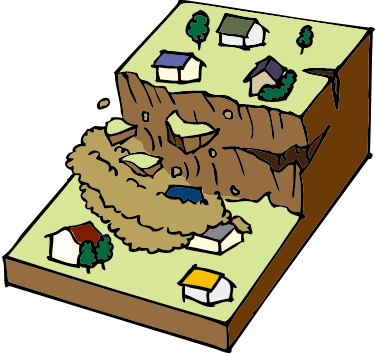 ・急な斜面の土砂が雨水の浸透や地震などの影響によって、突然崩れ落ちる現象です。