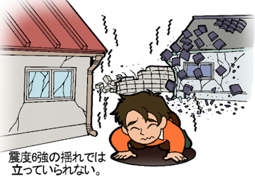 一般的に震度6弱で立っていることが困難になり、震度6強では這わないと動けないほどの揺れになります。