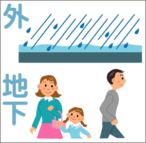 ◆ 大雨などにより地下階への浸水が予想される場合は、早めに避難しましょう。