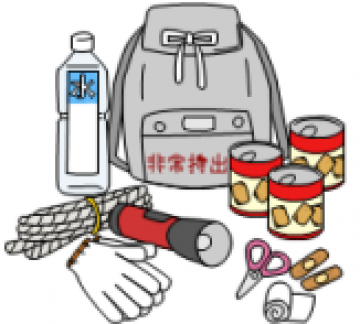(例)京都市災害時帰宅困難者ガイドマップ、飲料水、簡易食料、懐中電灯、ヘルメット、軍手 など