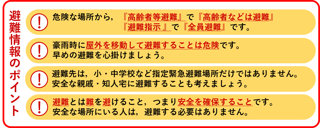 「避難情報のポイント」を確認して適切な避難行動をとりましょう