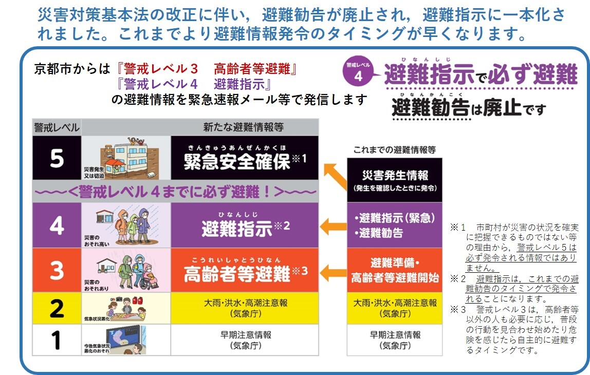災害対策基本法の改正により皆様にお伝えする避難情報が変わります