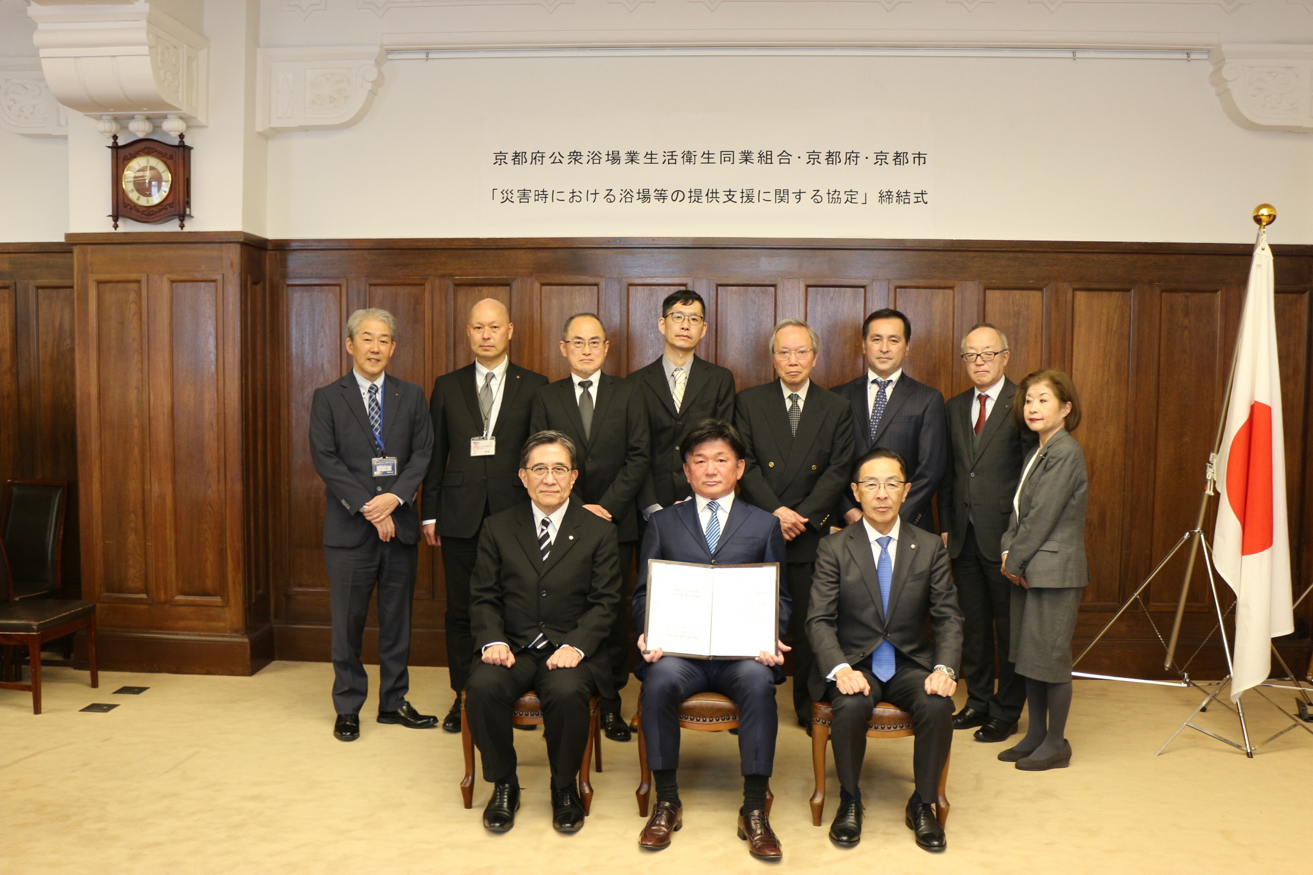 令和8年2月5日に、京都府公衆浴場業生活衛生同業組合、京都府及び本市で「災害時における浴場等の提供支援に関する協定」を締結しました。